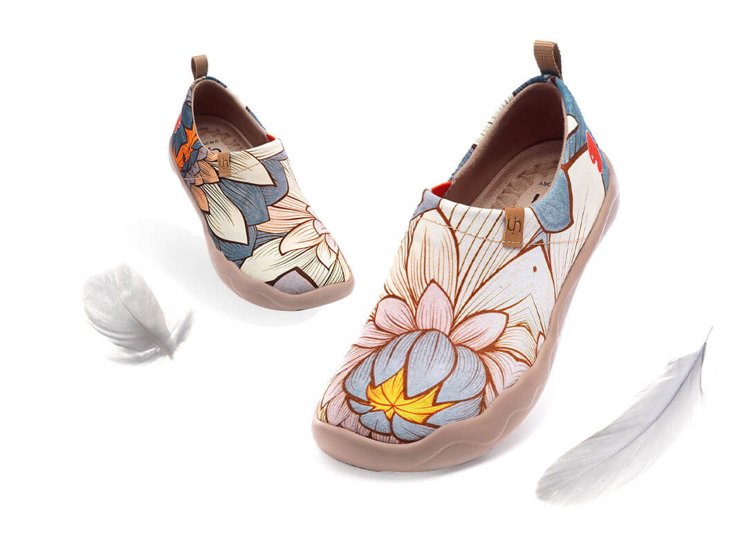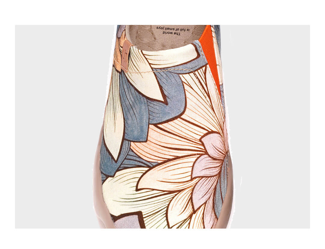 The lotus is a symbol of purity and perfect beauty in many Asian cultures and faiths, but it is even more than that. It symbolizes purity or beauty that holds itself above the mud and water that is variously interpreted as imperfection, sin, attachment, or Earthly desires. Feel yourself on clouds with these stunning canvas shoes!